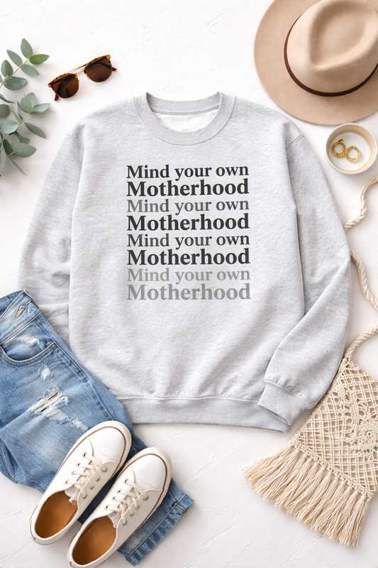 Mind Your Own Motherhood Sweatshirt – Funny Mom Crewneck | Gildan Ash Grey Mind Your Own Motherhood Crewneck Sweatshirt – Gildan Ash Grey | Funny Mom Sweatshirt | Cozy Mom Life Pullover