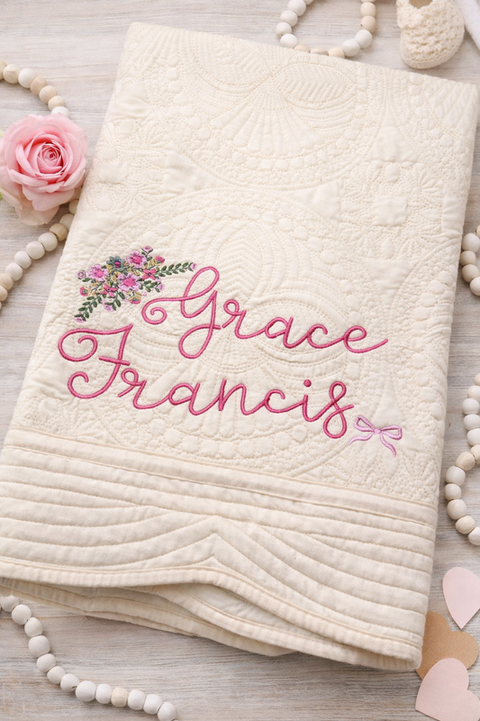 Personalized Baby Blanket Quilt with Name – Embroidered Custom Newborn Keepsake