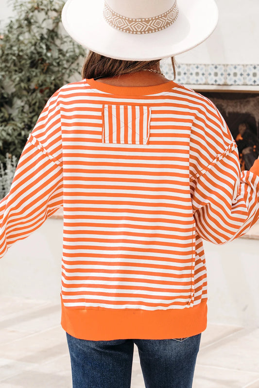 Orange Stripe Drop Shoulder Top