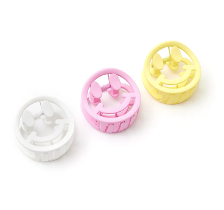 Bring a smile with you wherever you go thanks to this set of three matte finish smiley face claw clips. The perfect accessory for thin or thick hair, these ready-to-hold hair clips bring the fun to any look!