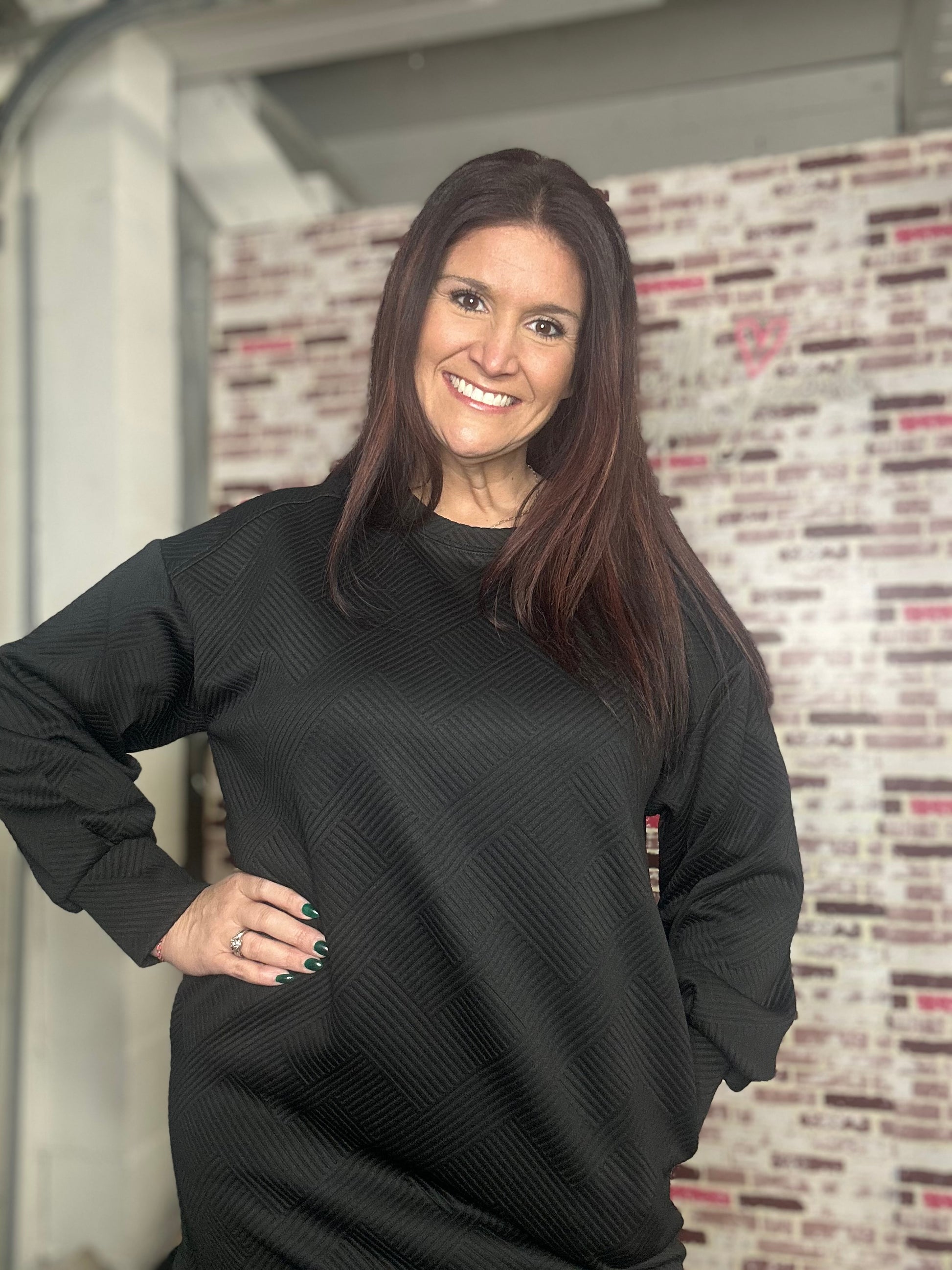 "Stay comfy and stylish in our Cozy Forever Dress. Whether you choose black or magenta, this oversized sweatshirt will keep you snug and looking cool."