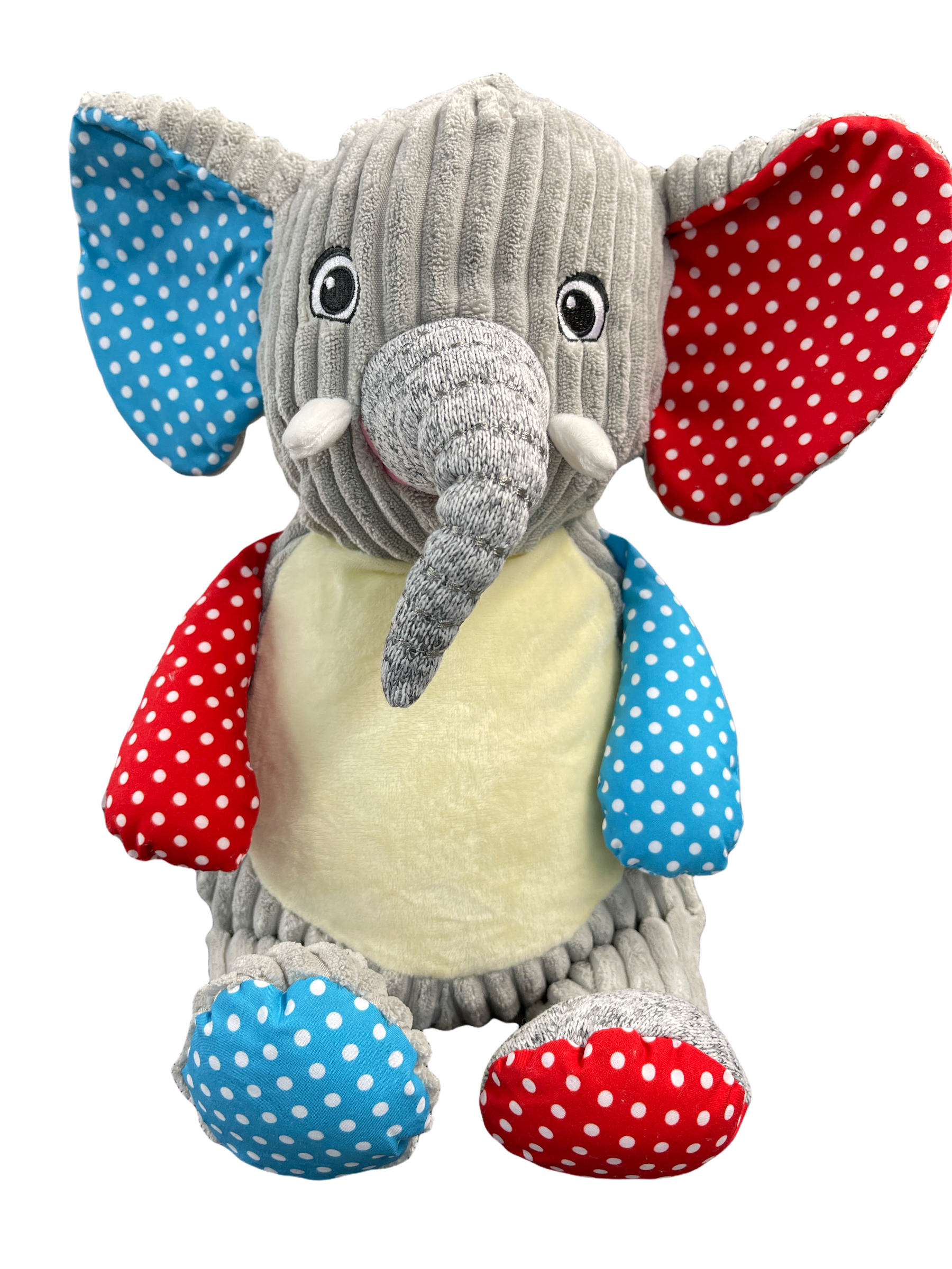 Embroidered Stuffed Patchwork Harlequinn Printed Elephant Animal Cubbie Personalized Baby Gift