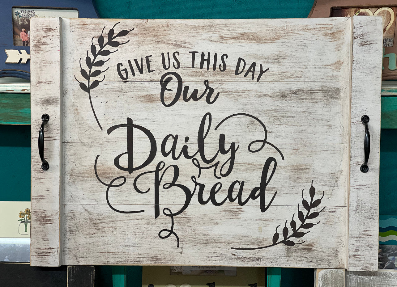 Give us this Day White Distressed Farmhouse Stove Top Cover Noodle Board