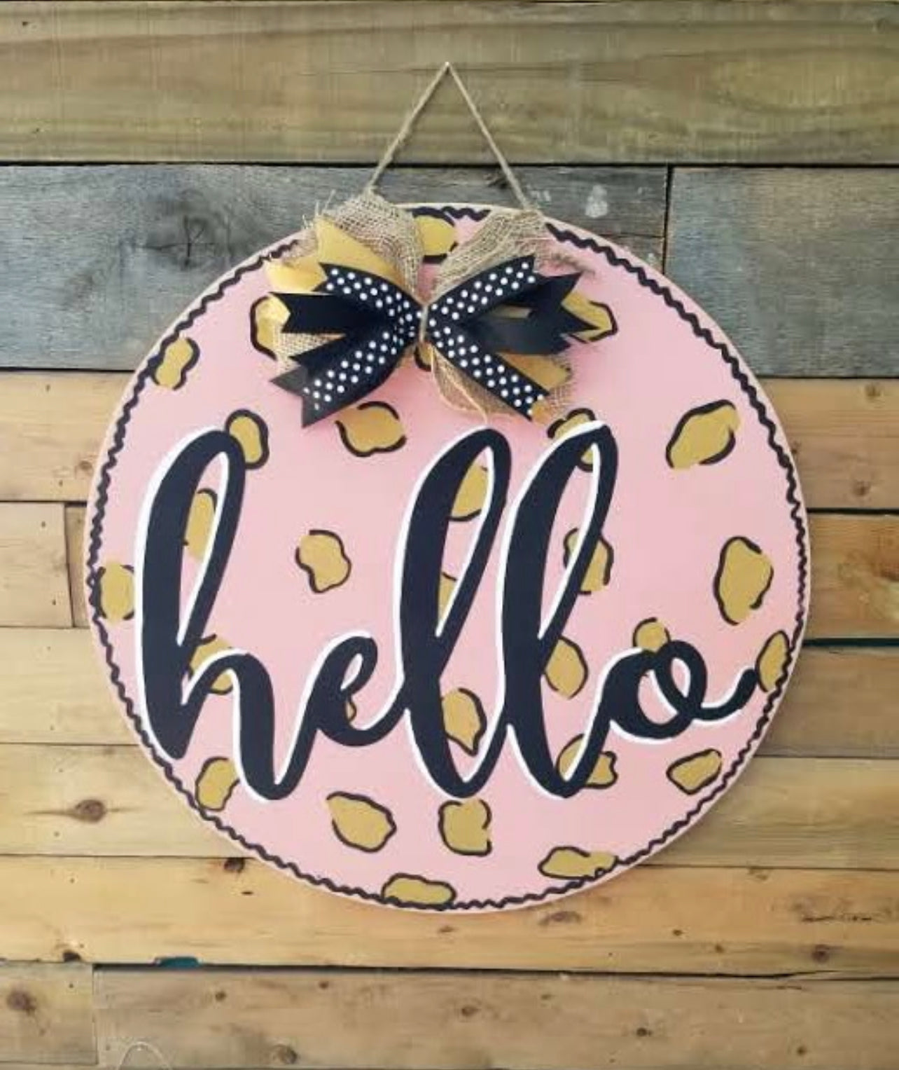 Every porch needs a door hanger!! Brighten up your porch with this perfect hello leopard hanger!