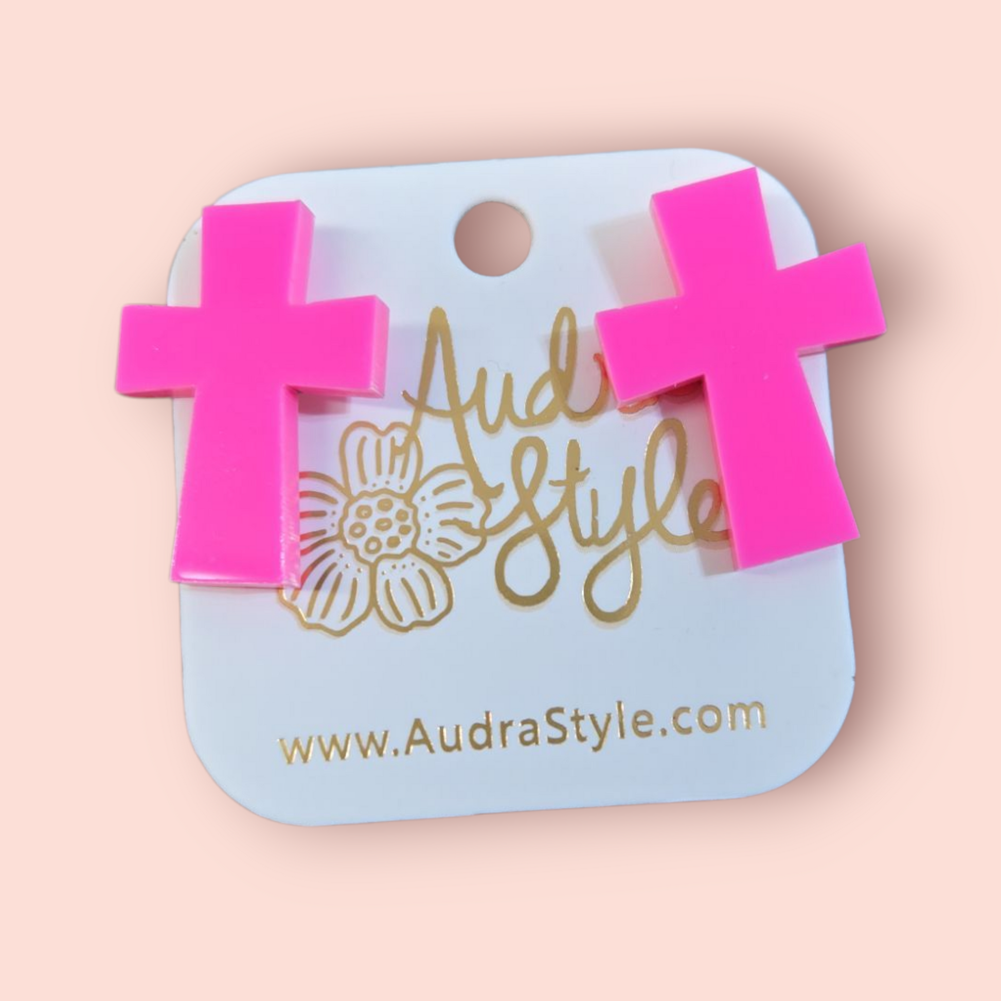 Add some edginess to your look with these Hot Pink Cross Earring Studs! The bold color and unique cross design make a statement (without being too preachy). Perfect for adding a touch of attitude to any outfit.