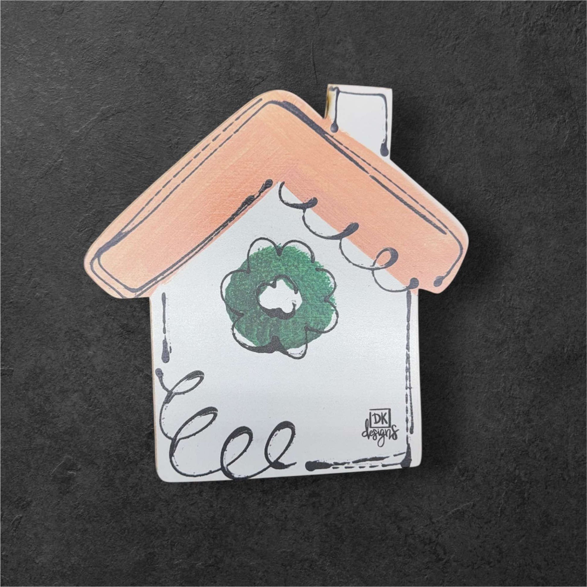 Elevate your front door decor with our House interchangeable attachment. The Little White House with a charming tan roof and green wreath offers endless opportunities for personalization. Create a warm and welcoming entrance for your home.