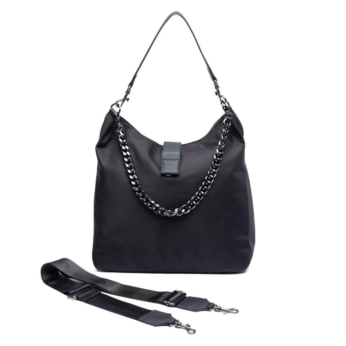 - Made of Black Nylon Twill with removable Gunmetal (black) chain and Gunmetal hardware