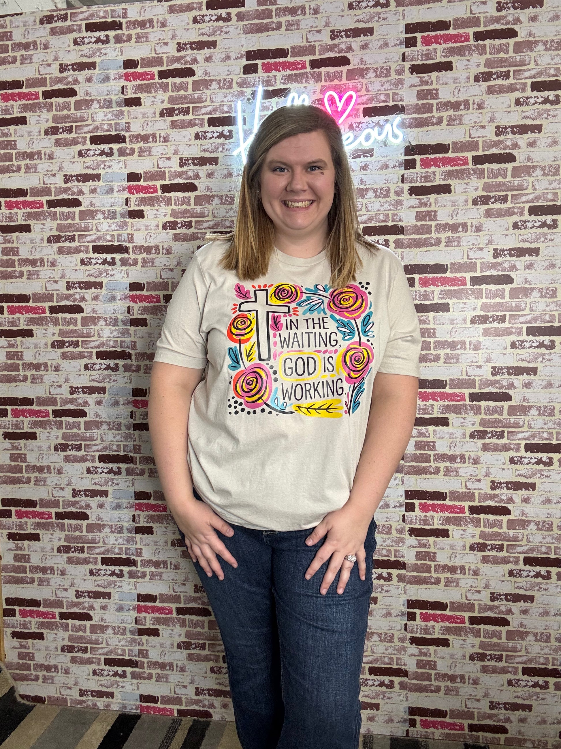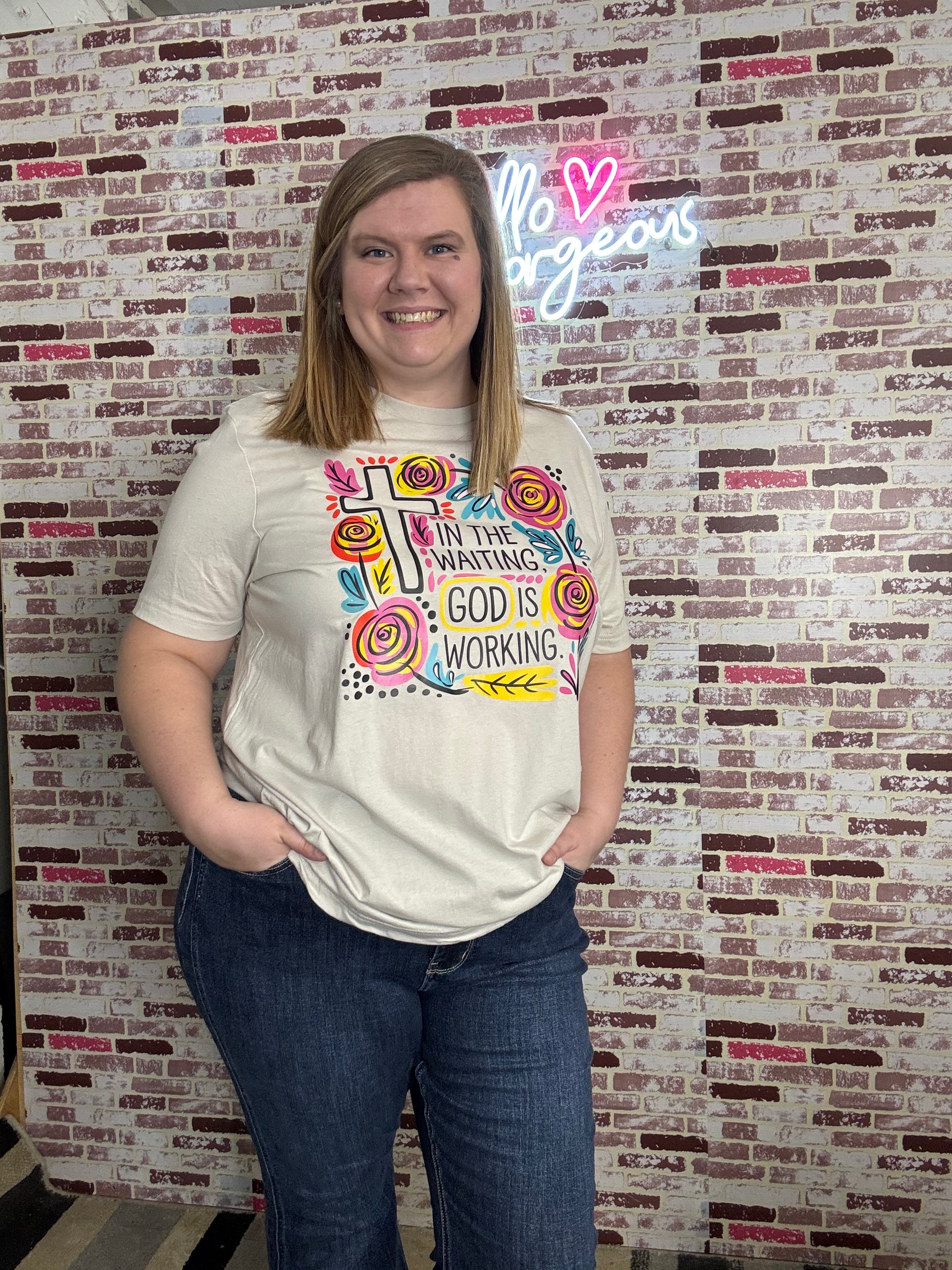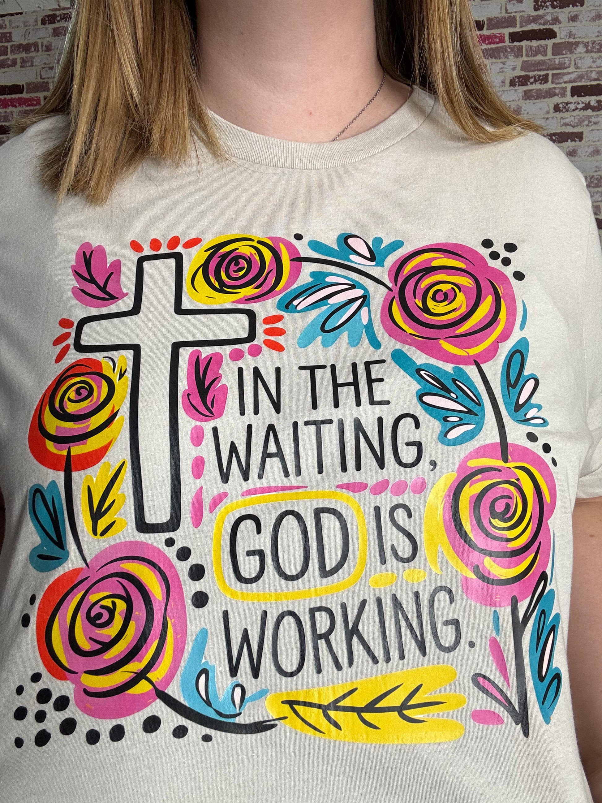 Brighten your day with the "In the Waiting God is Working" tee, featuring a colorful cross design that celebrates faith in a fun, vibrant way. Perfect for those moments when patience is key, this playful shirt reminds you that good things are happening behind the scenes. Comfortable and uplifting, it’s a cheerful addition to any wardrobe.
