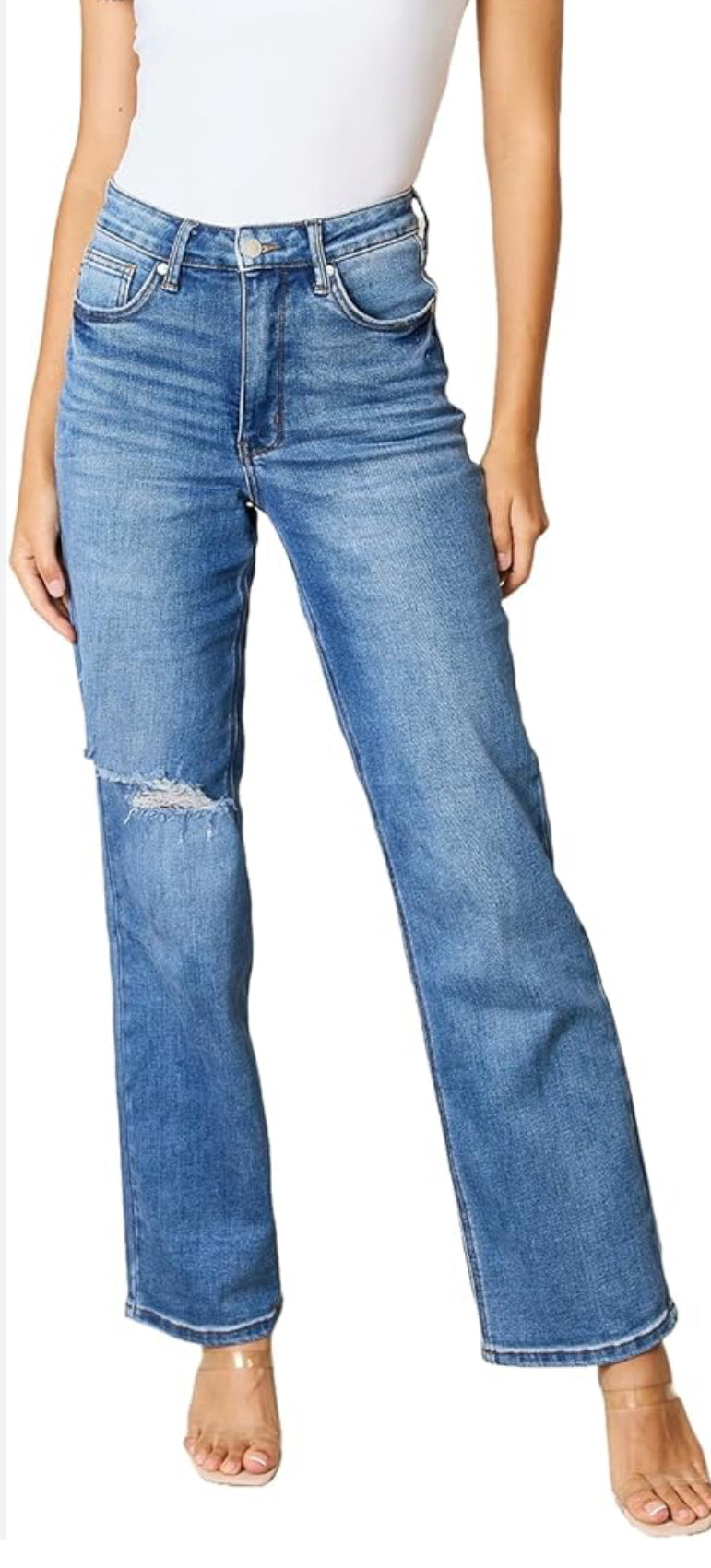 Get ready to rock the 90's with Judy Blue's Straight Jeans! These stretchy, ripped jeans are perfect for a casual yet edgy look. With a straight leg fit, they offer both style and comfort. Don't miss out on this throwback fashion statement!