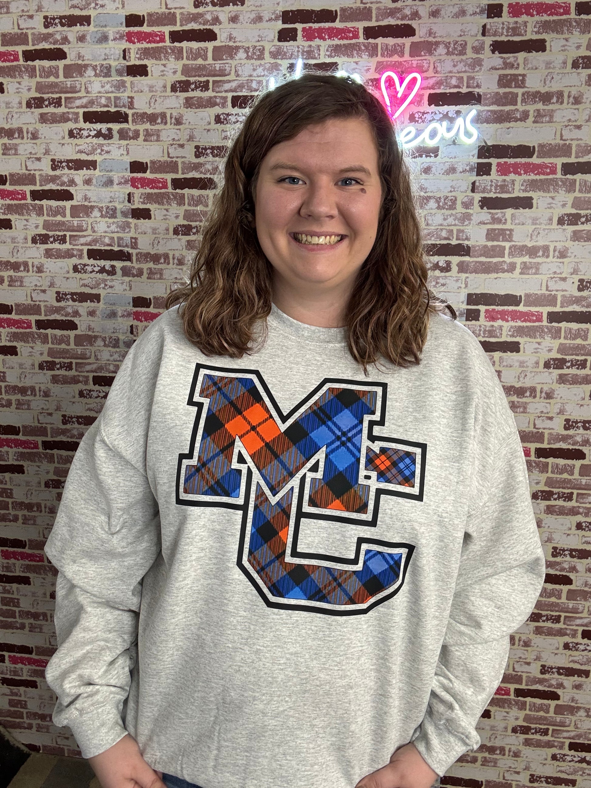 Show off your school pride in style with the Plaid MC Sweatshirt! Its cozy fabric and vibrant plaid design keep you comfy and spirited all day long. Perfect for cheering on your team or just adding a fun twist to your everyday look. Embrace the playful vibe and let your school spirit shine!