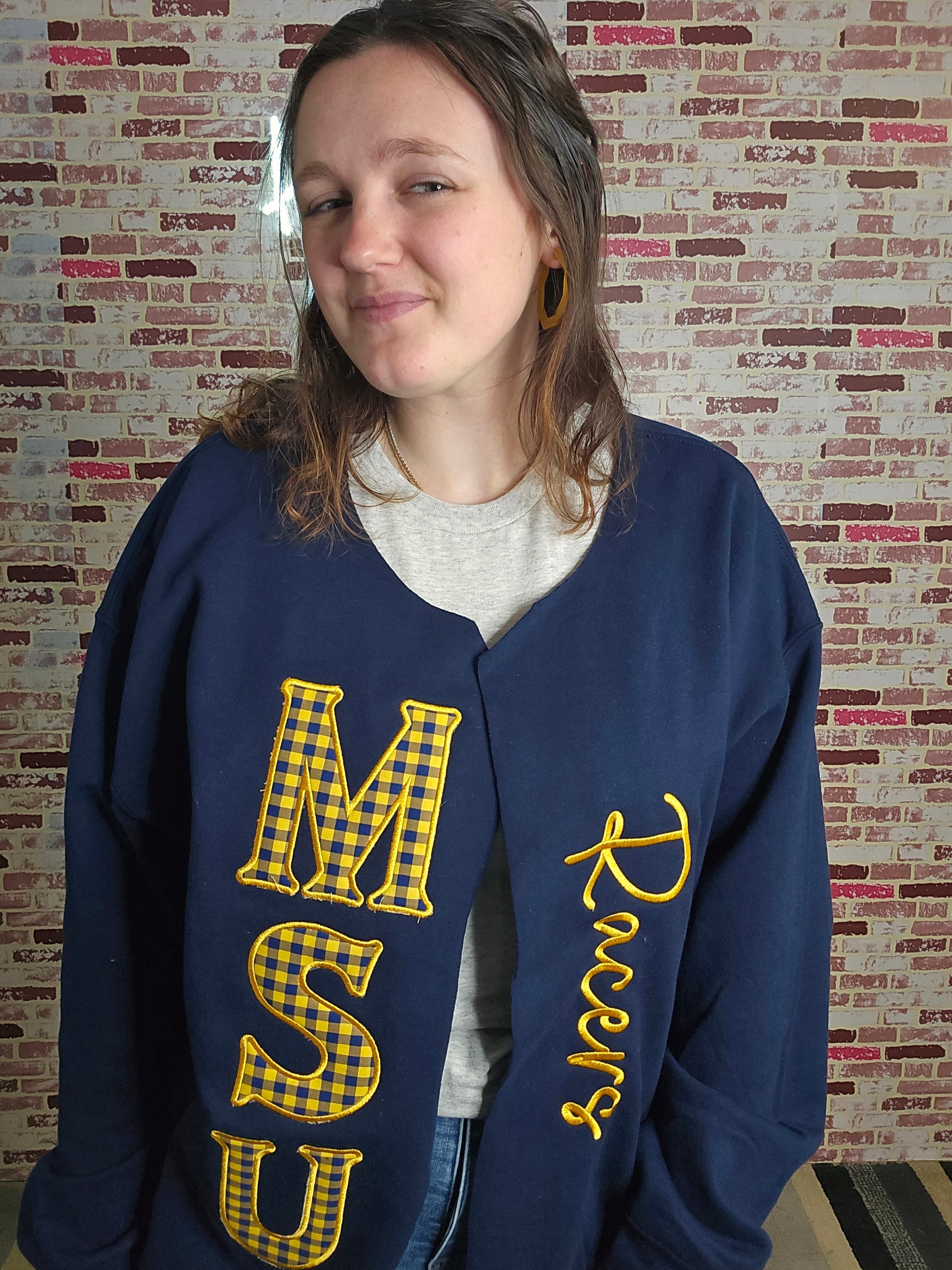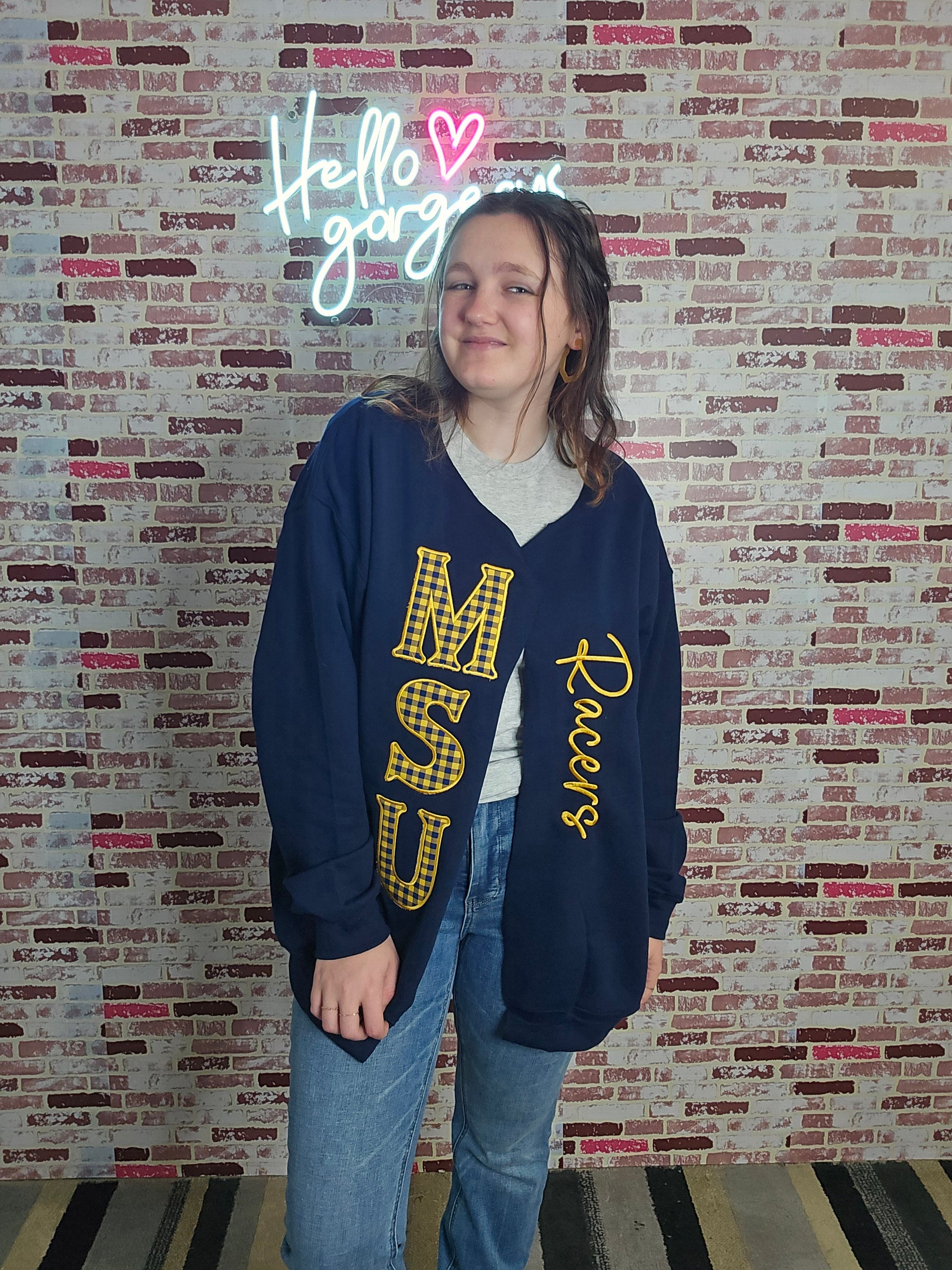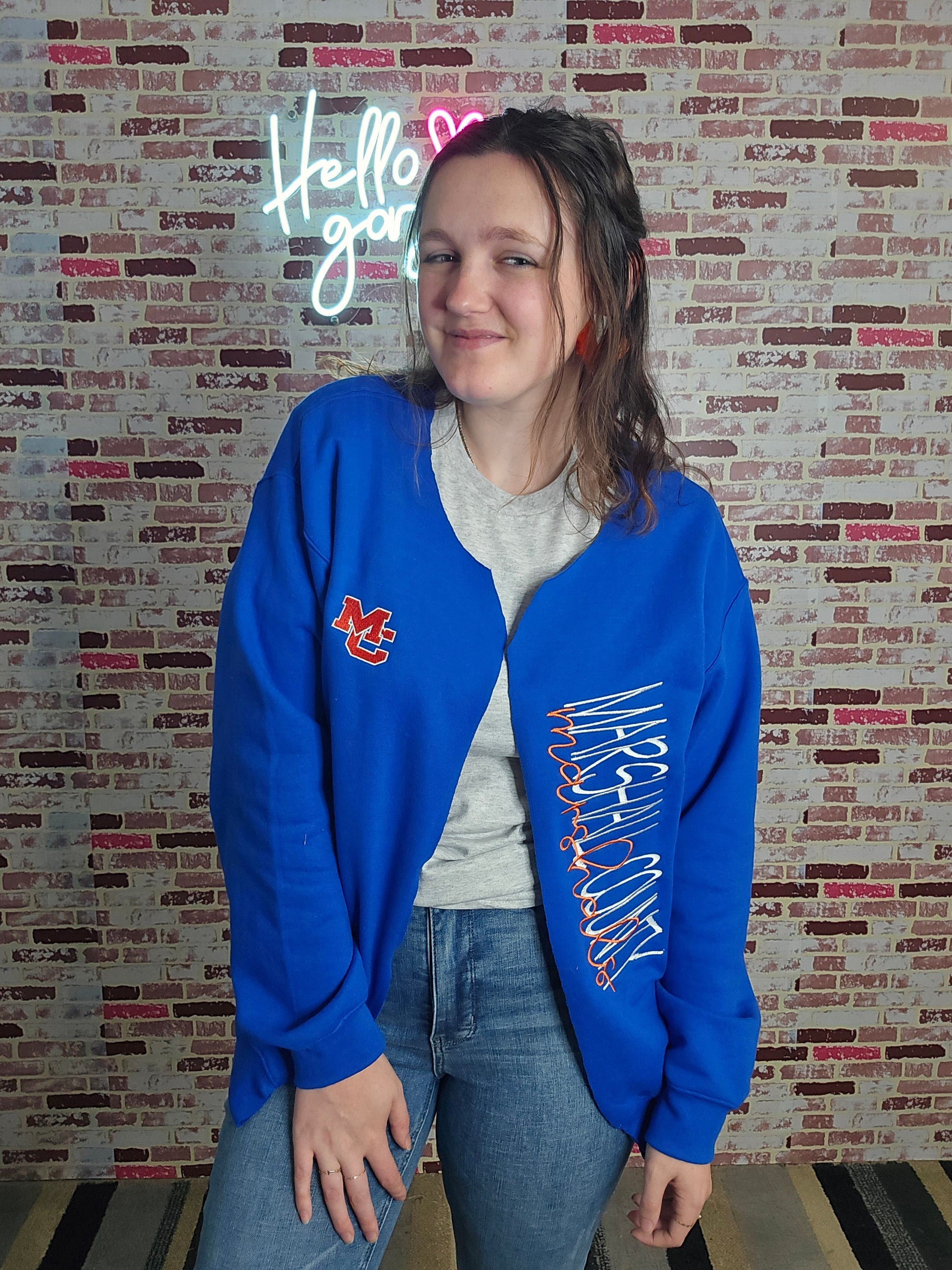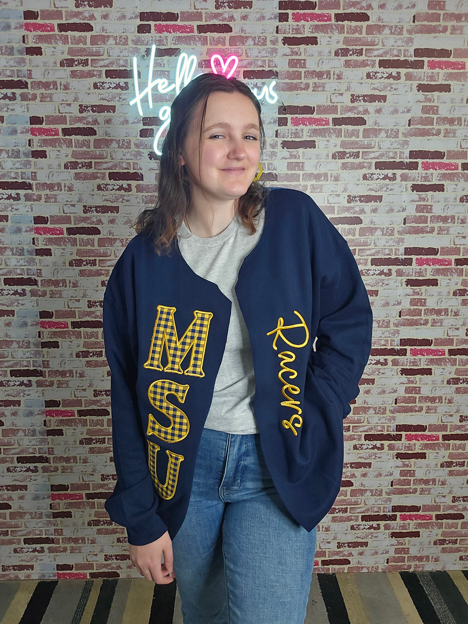 Upgrade your school spirit with our customizable sweatshirt cardigans. Stay cozy and stylish while showing off your school pride. Perfect for any occasion, these cardigans are a must-have for any school enthusiast. Elevate your wardrobe and stand out with our School Spirit Sweatshirt Cardigans.