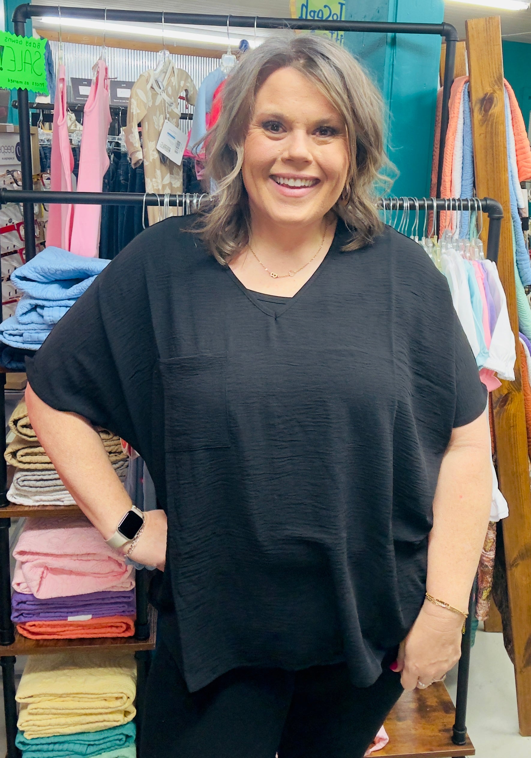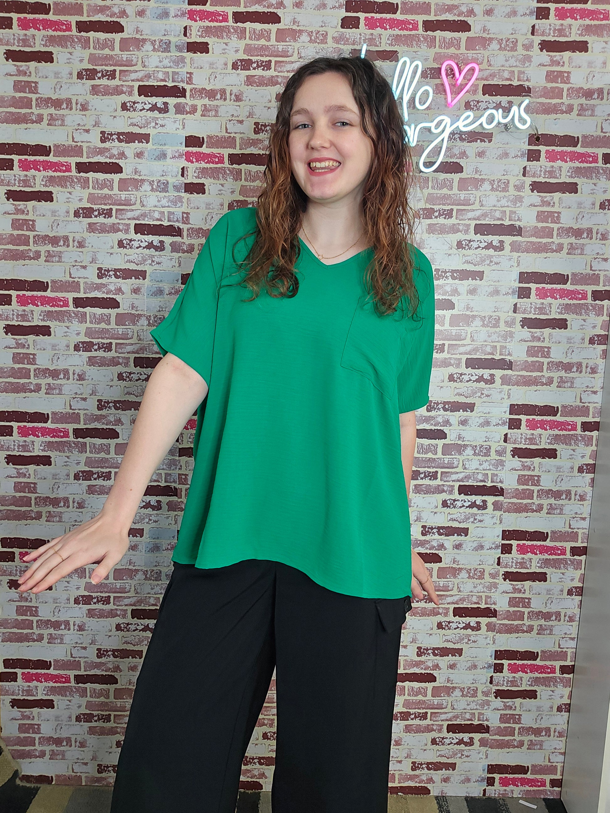 Step up your style game with the Stay Cute Tunic! This basic tunic not only comes in a variety of colors, but also features a convenient pocket for your necessities. Stay comfy and cute in this versatile piece.