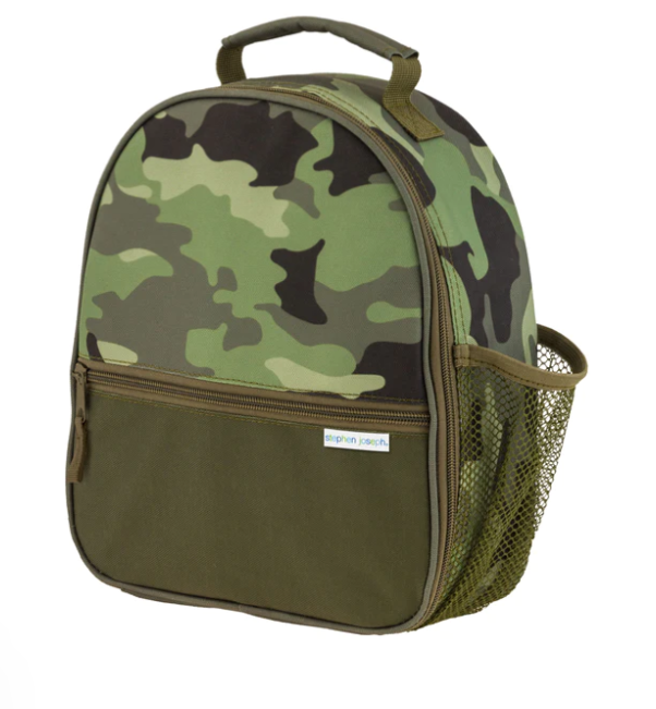 Kids will be “all over” the Stephen Joseph All Over Print Lunchbox. Perfectly sized for school age kids, these fun and functional lunchboxes are not only well designed but durable. Large enough to carry your children’s lunch and snack needs for school or even a day trip or picnic. The All Over Print Lunchbox features a spacious insulated interior compartment, an outside storage pocket– perfect for mealtime accessories like utensils and napkins, an interior elastic and mesh pocket, and an exterior mesh water bottle holder. Be sure to gear up with the matching Stephen Joseph All Over Print Backpacks. Want to make it even more individual? Then why not personalize it with your child’s initials or name?