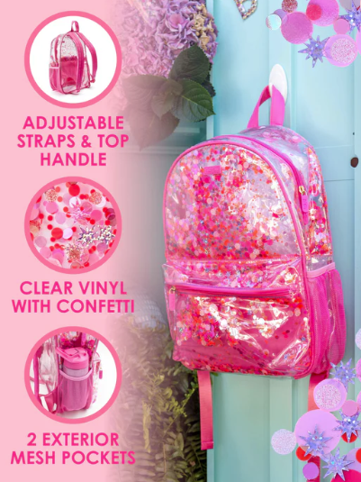 Carry a little confetti wherever you go with this fan favorite confetti backpack! This heavy-duty vinyl backpack features our signature multicolored Essentials Confetti and is sure to brighten up your school day.