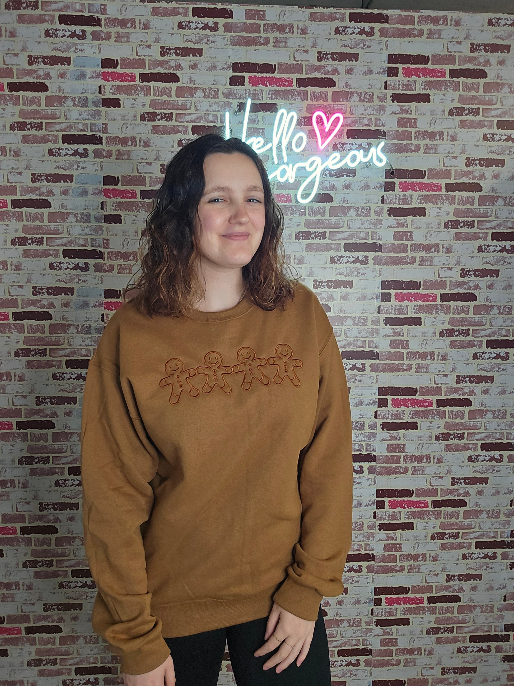 Get into the holiday spirit with our playful Gingerbread Man Sweatshirt! This cozy brown sweatshirt features a charming gingerbread man design, perfect for spreading Christmas cheer in style and comfort all season long.